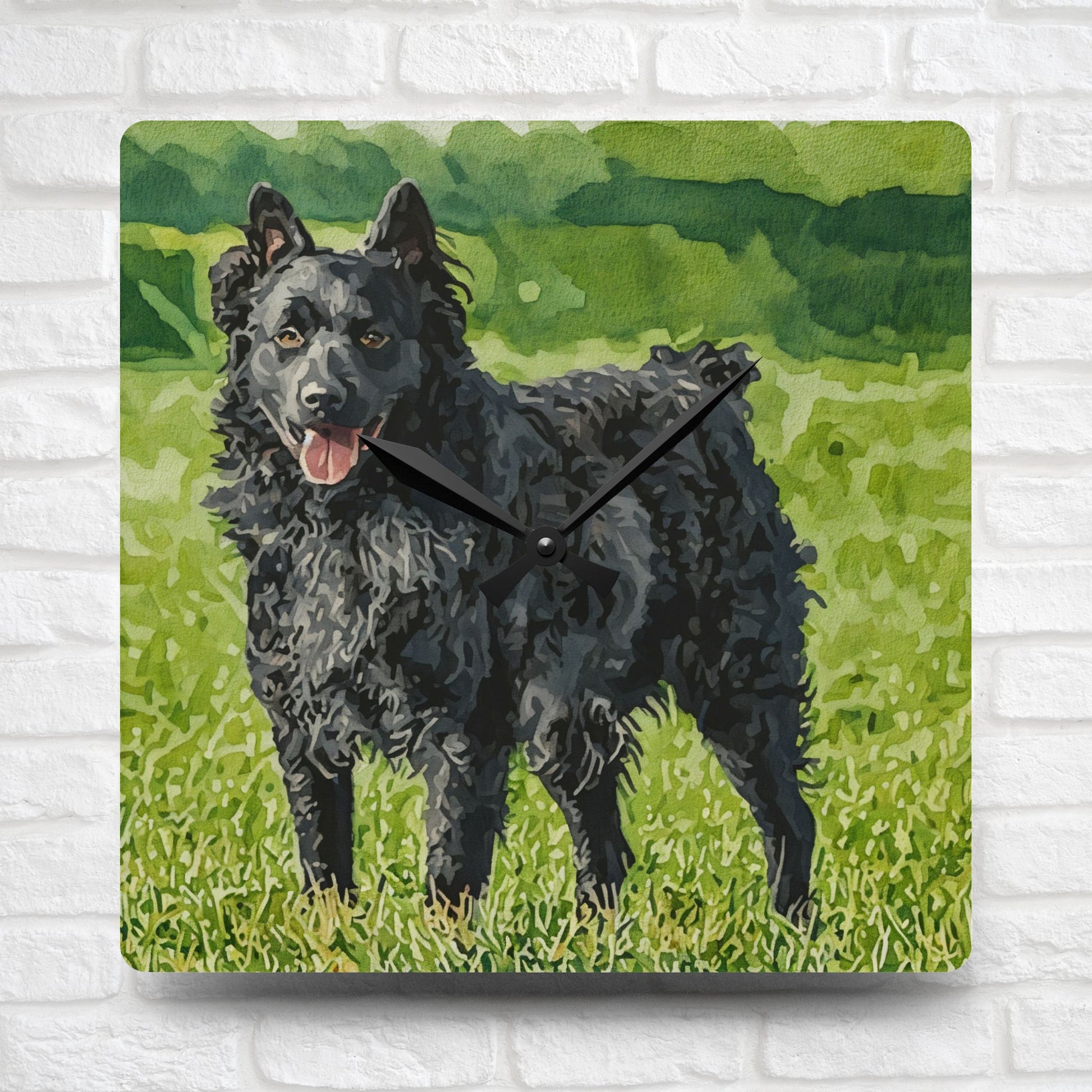 Celebrate the intelligence and energy of the Croatian Sheepdog every hour of the day. This 10.75″ square acrylic wall clock features a crisp, full-color headshot of this rare herding breed. The glossy acrylic surface intensifies the colors, while the silent clock mechanism keeps time without distracting ticks. A keyhole slot makes hanging easy. Perfect for kitchens, offices, or any dog lover’s space.