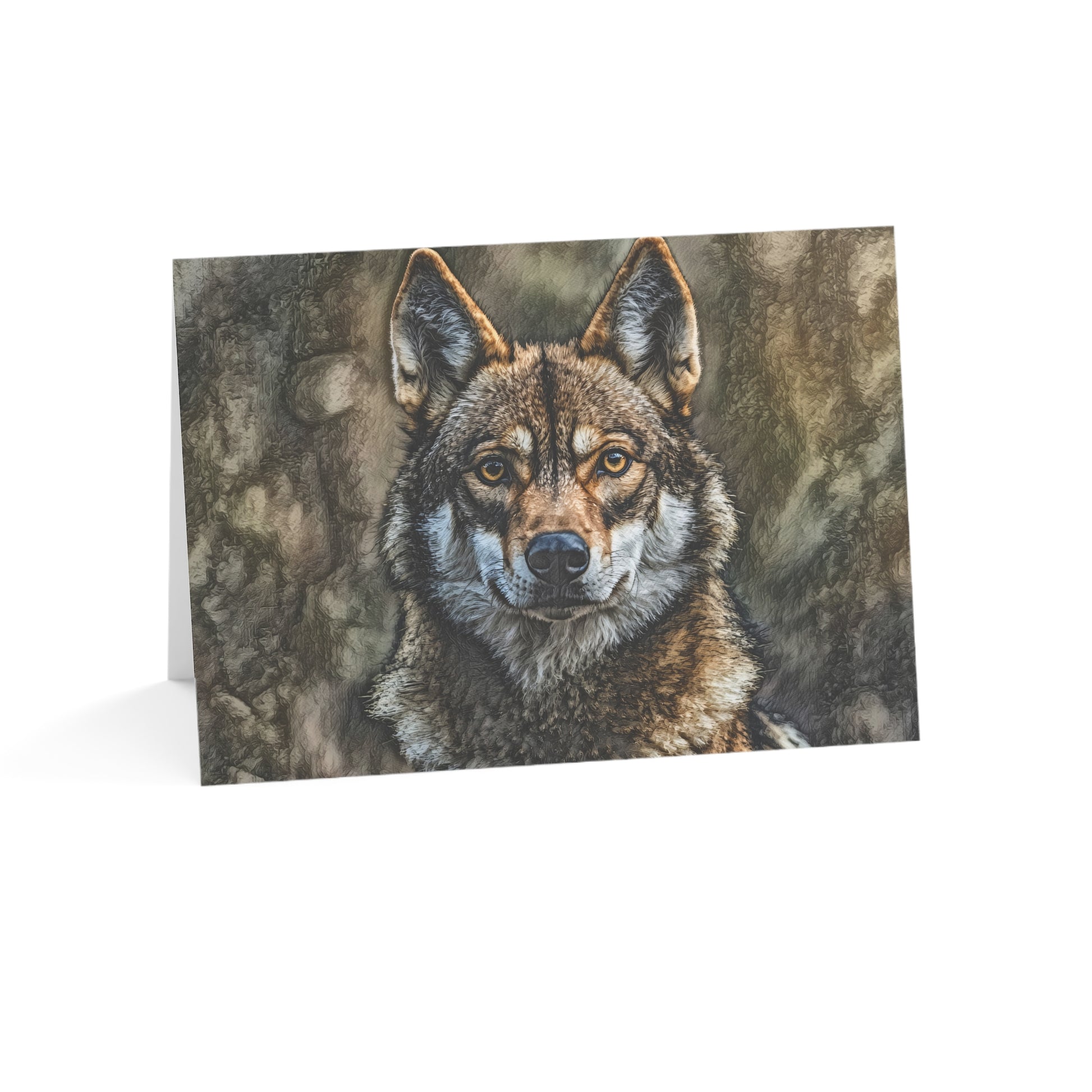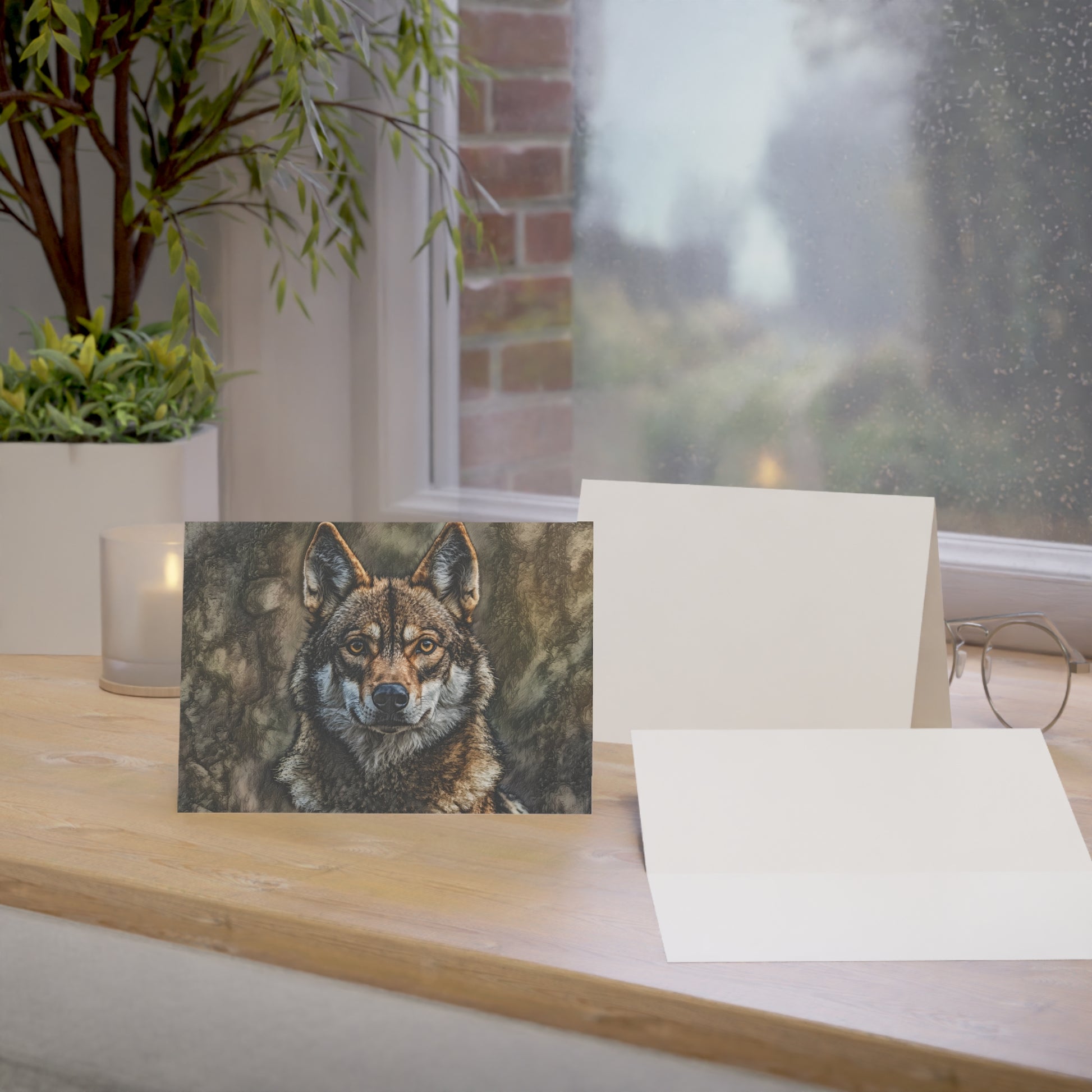 Capture the wild charm of the Czechoslovakian Vlcak—also known as the Czechoslovakian Wolfdog—while sending a personal note. Each 5″×7″ card is printed on heavyweight 270 gsm matte paper and left blank inside for your own heartfelt message. Matching envelopes are included in sets of 10, 30, or 50.