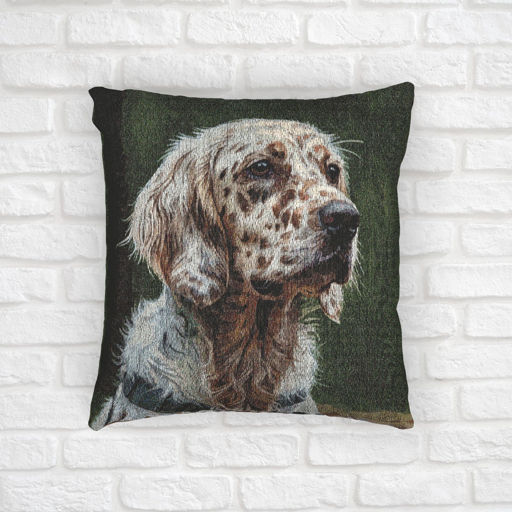 Add setter elegance to your space with this cozy woven pillow featuring a beautiful watercolor of an English Setter. Perfect on a sofa, chair, or bed.