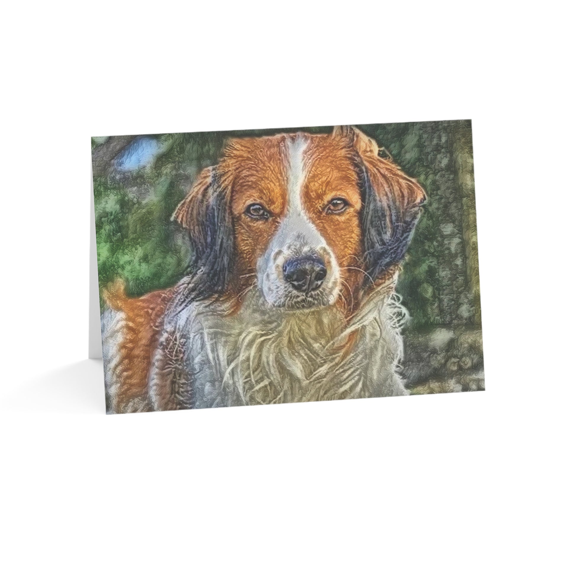 Celebrate the rare beauty of the Dutch Kooikerhondje with this set of greeting cards.