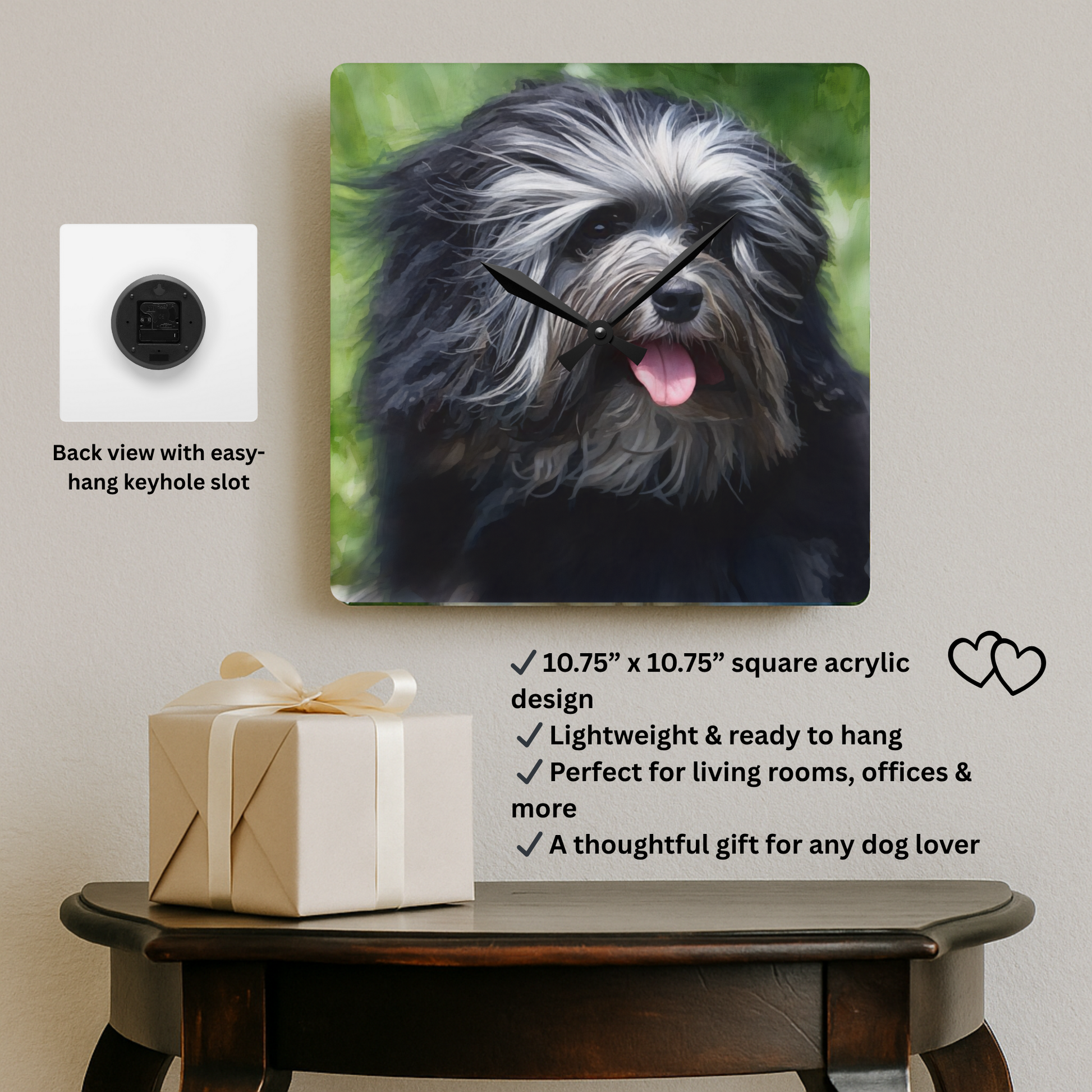 Löwchen Wall Clock | 10.75” Acrylic “Little Lion Dog” Décor
