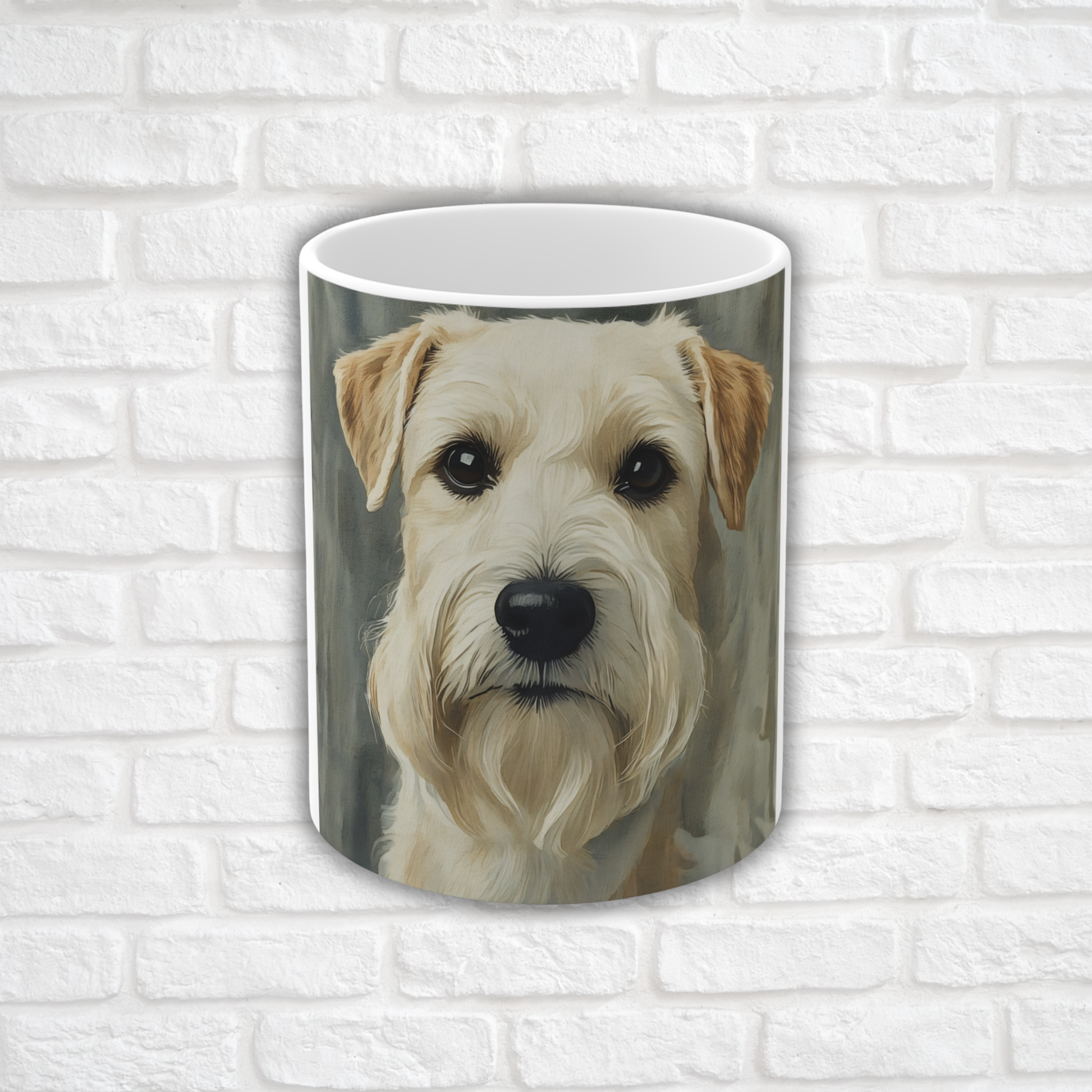 Bring a touch of Welsh charm to your morning coffee! This 11 oz ceramic mug features a delightful watercolor of the Sealyham Terrier’s expressive eyes and distinctive white coat.