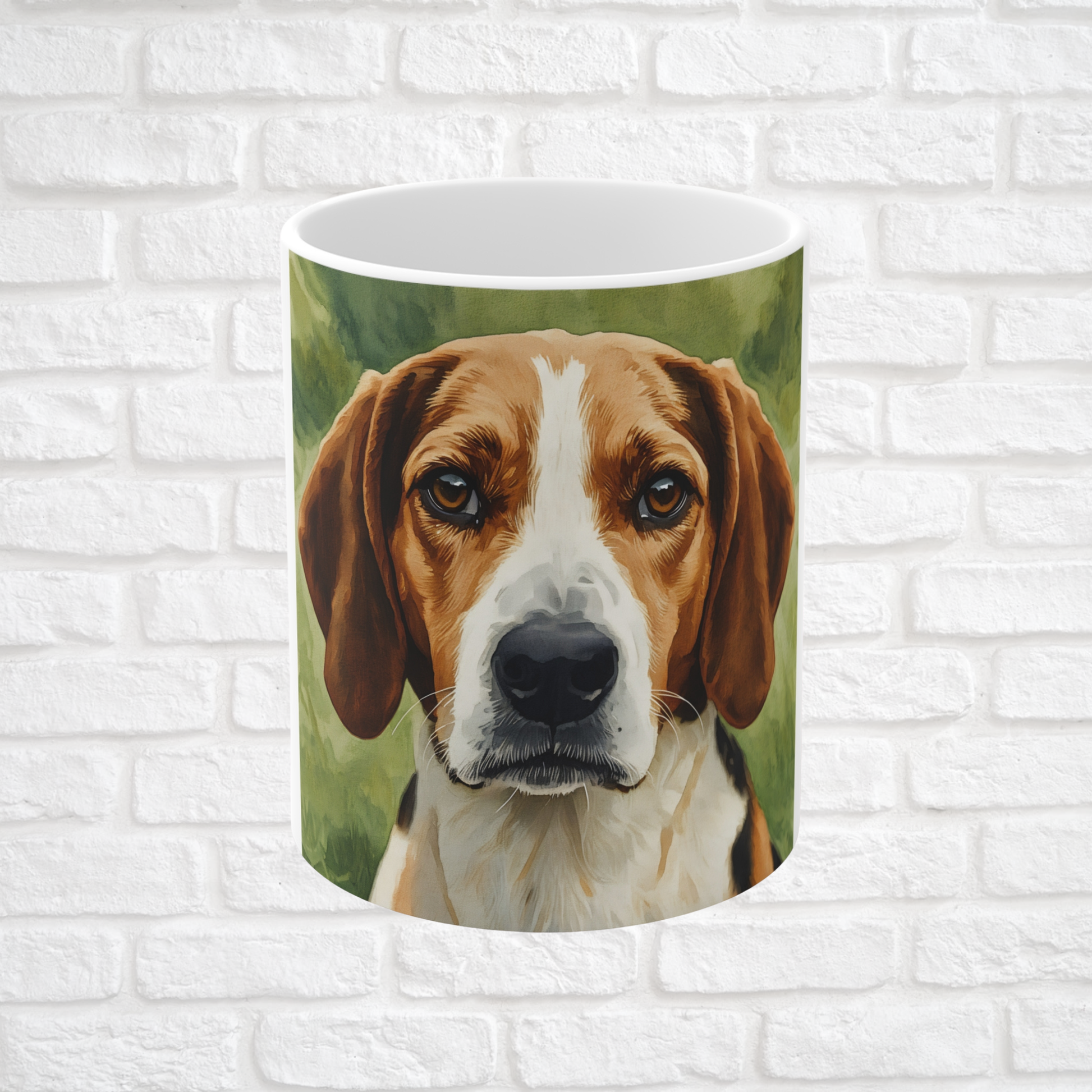Bring the drive and determination of the Treeing Walker Coonhound to your coffee routine. This premium ceramic mug features a lifelike image of the breed’s sharp expression and athletic build.